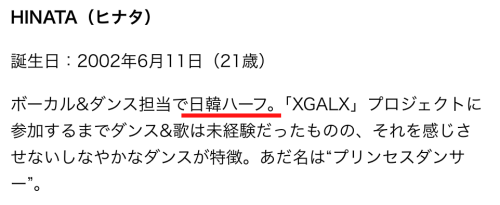 ひなたさんは韓国人の親を持つ“日韓ハーフ”であることが明記されています。
